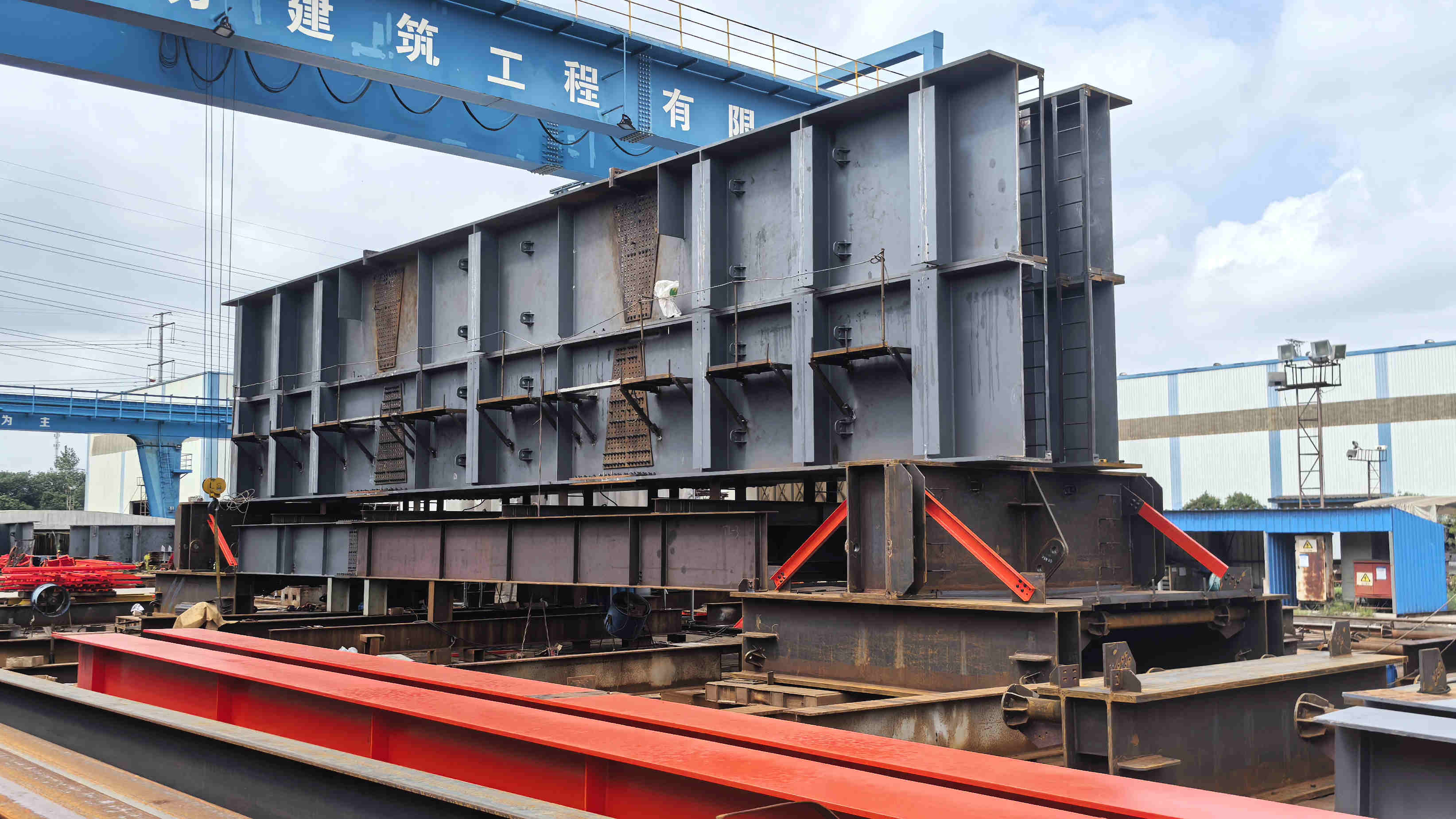 钢构厂完成3300吨龙门吊提升塔架大梁拼装 |
